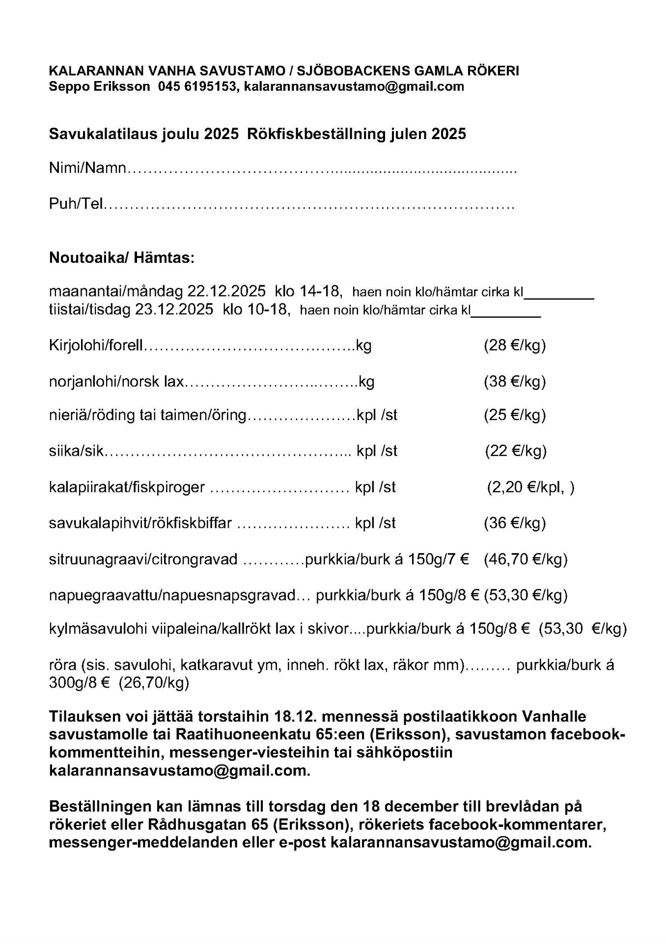 2025 joulukalatilaukset mieluiten torstaihin 18.12. mennessä.